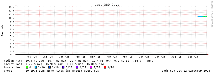 traceroute to 2001:4860:4860::8888 (2001:4860:4860::8888), 30 hops max, 80 byte packets - Generated at 2025-10-12 00:00:01