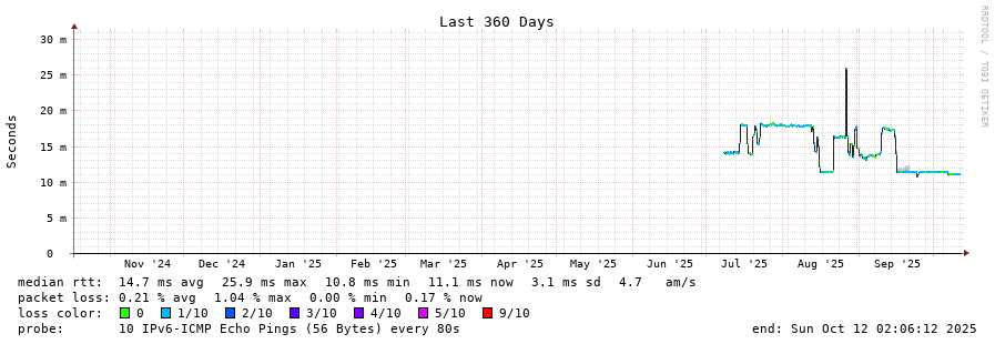 traceroute to www.facebook.com (2a03:2880:f17b:88:face:b00c:0:25de), 30 hops max, 80 byte packets - Generated at 2025-10-12 00:00:01