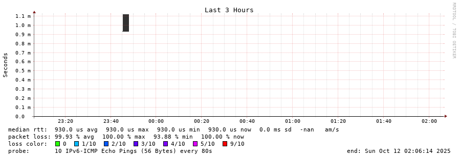 11 > 2603:10a0:909:73::3a (2603:10a0:909:73::3a) [*] 0.771ms 0.774ms 0.692ms