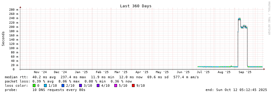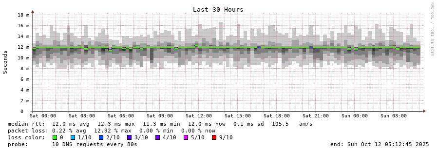 traceroute to 2001:7fe::53 (2001:7fe::53), 30 hops max, 80 byte packets - Generated at 2025-10-12 02:30:01