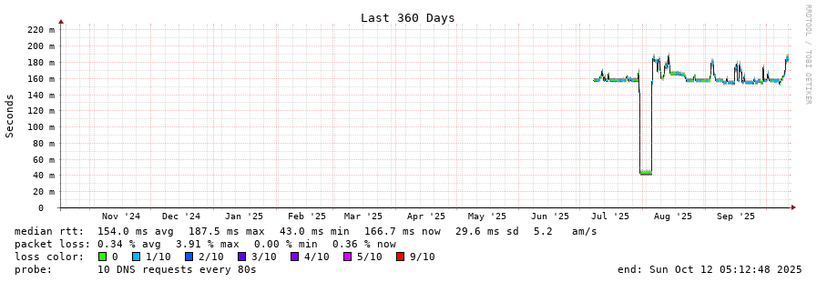 traceroute to 2001:7fd::1 (2001:7fd::1), 30 hops max, 80 byte packets - Generated at 2025-10-12 02:30:01