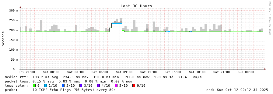 traceroute to 154.67.0.1 (154.67.0.1), 30 hops max, 60 byte packets - Generated at 2025-10-12 00:00:01