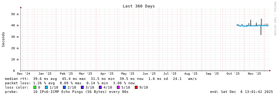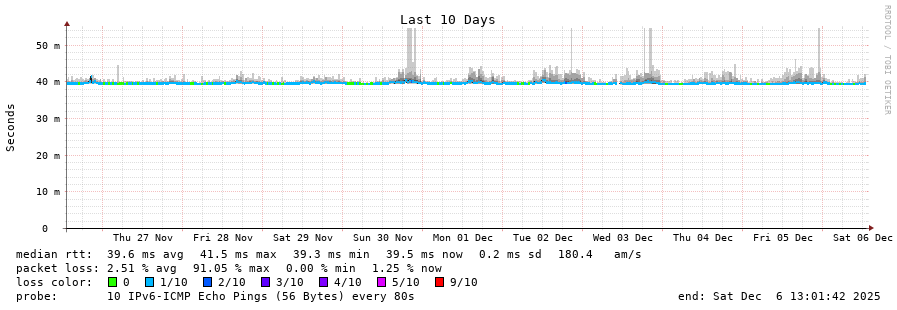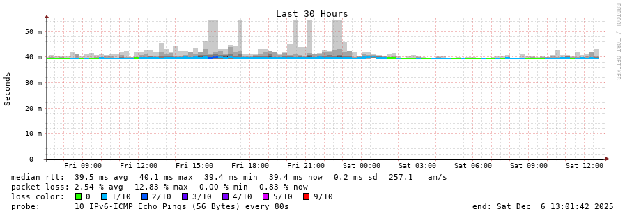 traceroute to 2c0f:5400:2:15::1 (2c0f:5400:2:15::1), 30 hops max, 80 byte packets - Generated at 2025-12-06 13:00:01