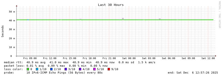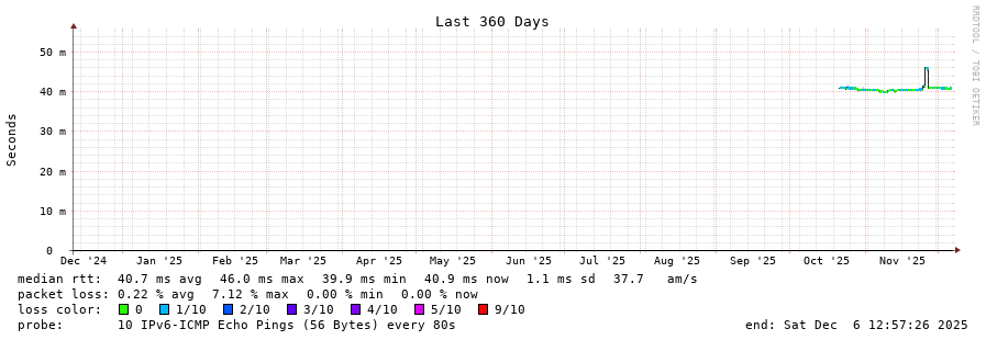 traceroute to 2001:b68:d::28 (2001:b68:d::28), 30 hops max, 80 byte packets - Generated at 2025-12-06 12:45:02