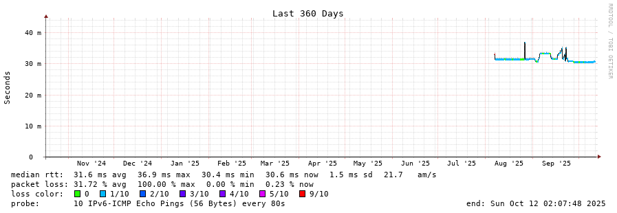 traceroute to 2001:35c0::204:27:68:152 (2001:35c0::204:27:68:152), 30 hops max, 80 byte packets - Generated at 2025-10-12 00:00:01