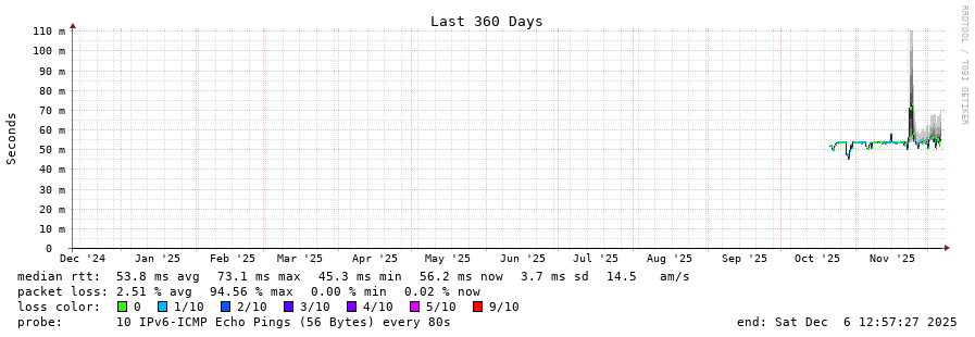 traceroute to 2a0c:9a40:8610:e3f::1 (2a0c:9a40:8610:e3f::1), 30 hops max, 80 byte packets - Generated at 2025-12-06 12:45:02