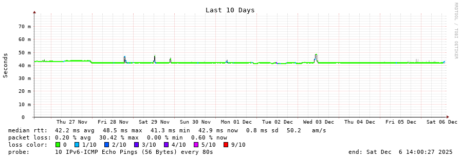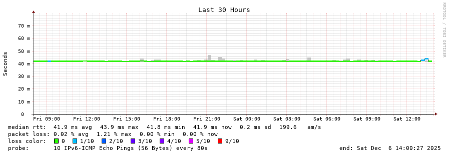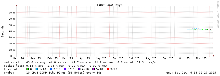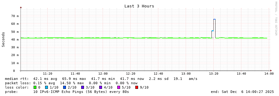 traceroute to 2a0b:2f00:0:234::151 (2a0b:2f00:0:234::151), 30 hops max, 80 byte packets - Generated at 2025-12-06 12:45:02