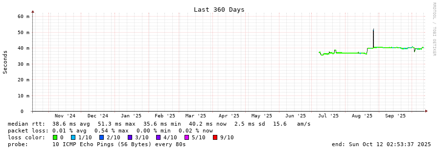 traceroute to 185.36.168.16 (185.36.168.16), 30 hops max, 60 byte packets - Generated at 2025-10-12 00:00:01