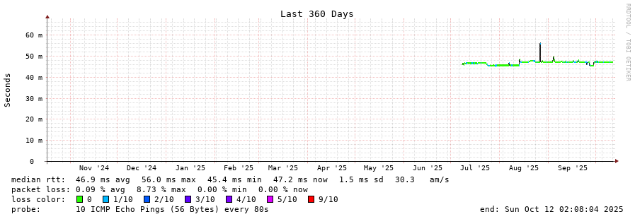 traceroute to 185.32.189.249 (185.32.189.249), 30 hops max, 60 byte packets - Generated at 2025-10-12 00:00:01