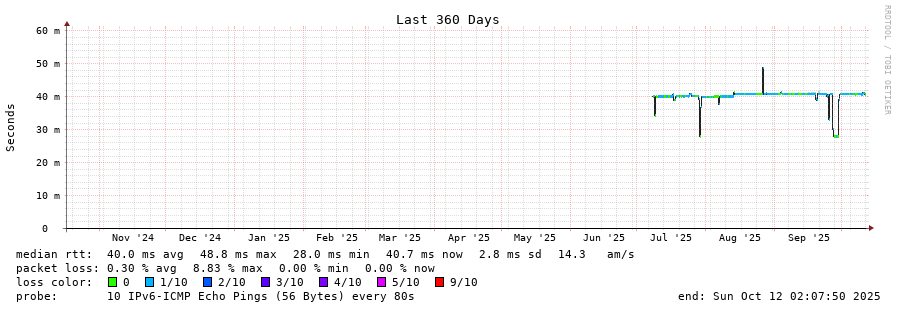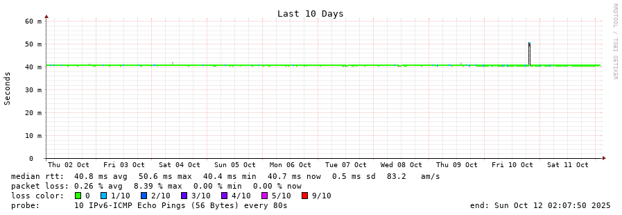 12 > 2a00:c561::4 (2a00:c561::4) [AS62416] 42.690ms 43.486ms 43.787ms