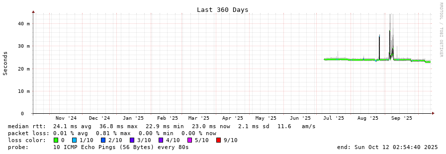 traceroute to 46.126.0.1 (46.126.0.1), 30 hops max, 60 byte packets - Generated at 2025-10-12 00:00:01