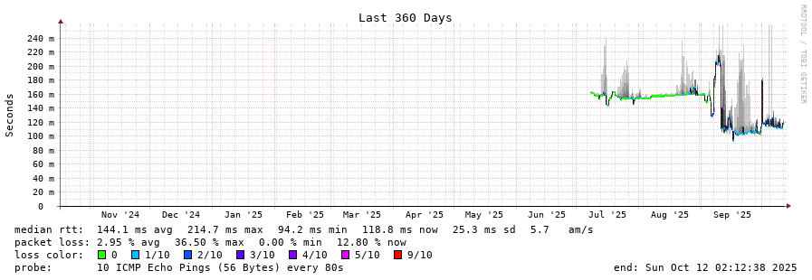 traceroute to 5.30.128.1 (5.30.128.1), 30 hops max, 60 byte packets - Generated at 2025-10-11 23:45:01