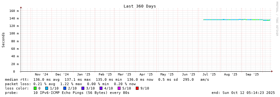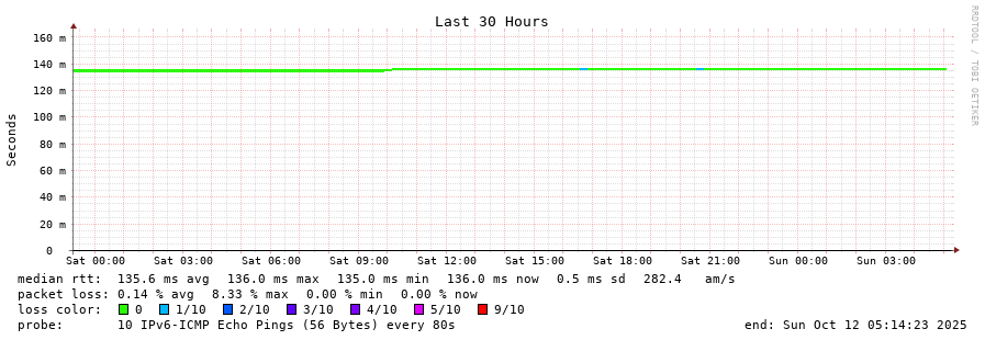 15 > sin1-sgcs2.smokeping.ovh.net (2402:1f00:8002:100::f72) [AS16276] 135.757ms 135.741ms 135.739ms