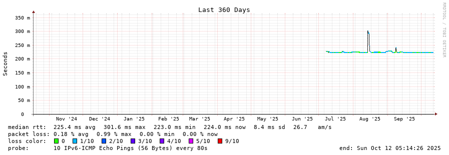 8 > 2607:5300:50::8 (2607:5300:50::8) [AS16276] 224.993ms 225.582ms 225.573ms