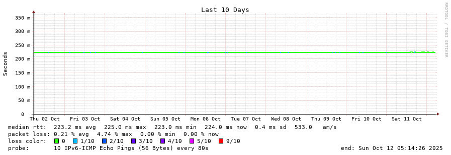 9 > fdff:f003:408::5 (fdff:f003:408::5) [*] 224.299ms 224.305ms 224.254ms