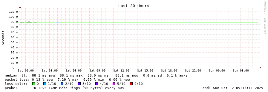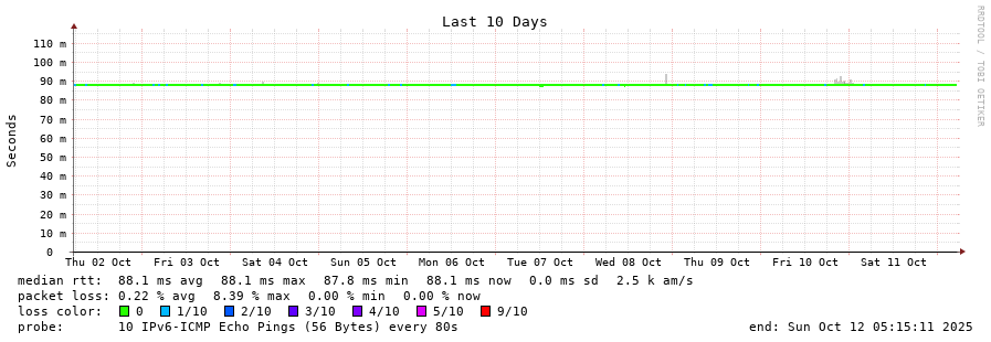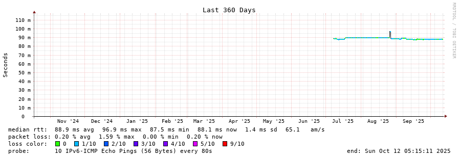 12 > 2604:2dc0:0:101::4e7 (2604:2dc0:0:101::4e7) [AS16276] 88.499ms 88.541ms 88.349ms