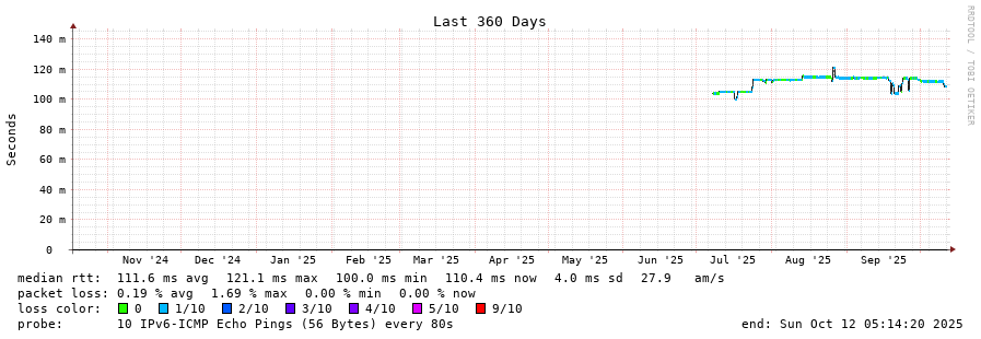 12 > 2607:5300:50:: (2607:5300:50::) [AS16276] 116.193ms 116.828ms 115.687ms