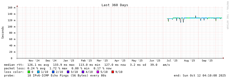 11 > 2604:2dc0:304::2:0:1ce (2604:2dc0:304::2:0:1ce) [AS16276] 126.857ms 126.887ms 126.838ms
