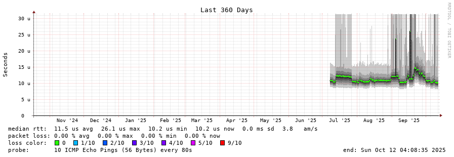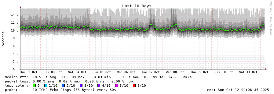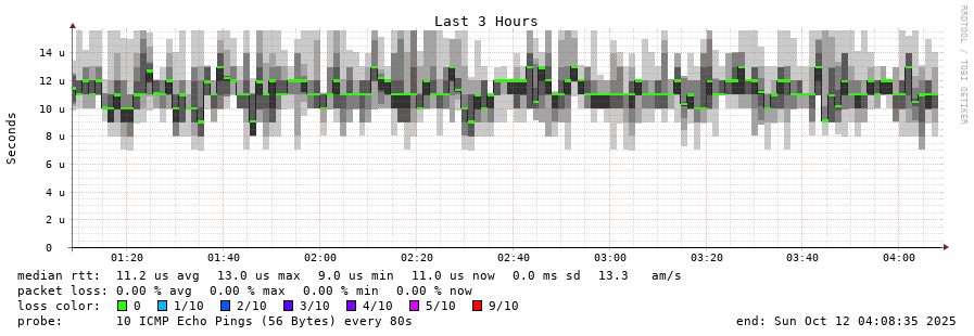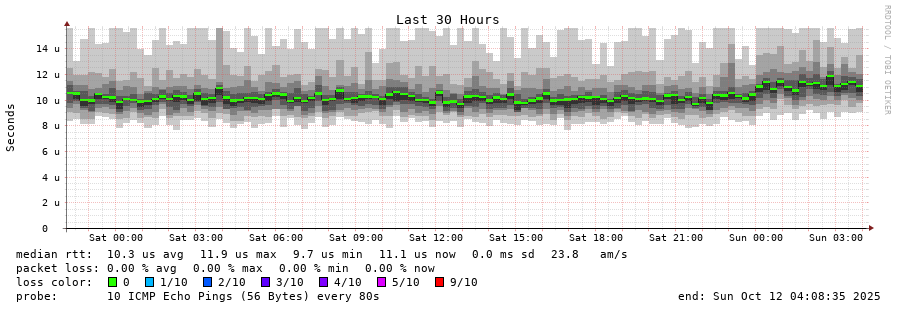 traceroute to 141.227.132.33 (141.227.132.33), 30 hops max, 60 byte packets - Generated at 2025-10-12 02:30:01 3 > 141.227.132.33 (141.227.132.33) [AS16276] 0.032ms 0.007ms 0.003ms