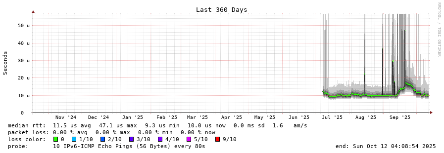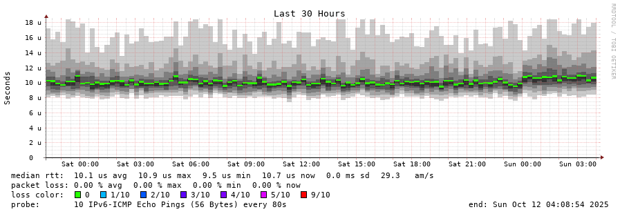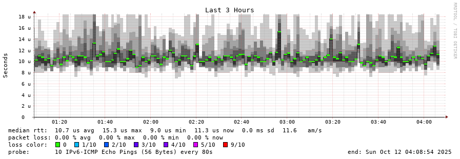 traceroute to 2001:41d0:ab03::2:0:d (2001:41d0:ab03::2:0:d), 30 hops max, 80 byte packets - Generated at 2025-10-12 02:30:01 3 > 2001:41d0:ab03::2:0:d (2001:41d0:ab03::2:0:d) [AS16276] 0.018ms 0.010ms 0.004ms