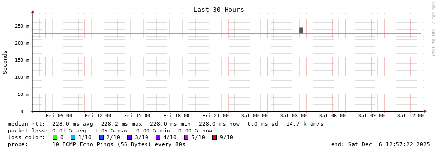 10 > 185.70.203.57 (185.70.203.57) [AS6762] 228.429ms 228.461ms 228.437ms