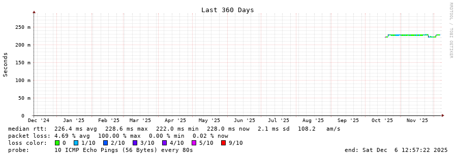 9 > 195.22.220.125 (195.22.220.125) [AS6762] 222.442ms 222.371ms 222.485ms