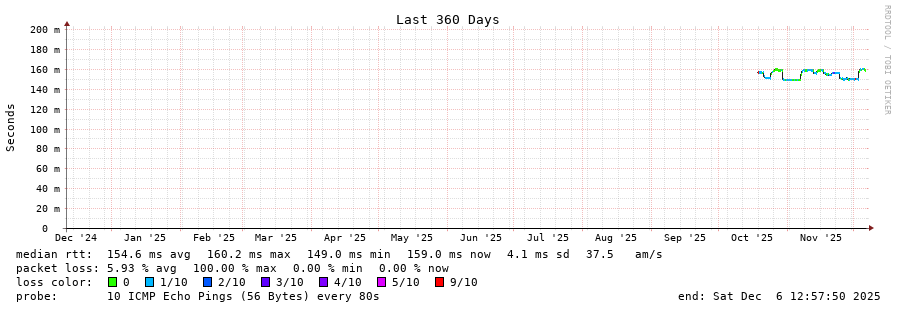 12 > 138.0.41.59 (138.0.41.59) [AS52320] 160.450ms 160.469ms 160.414ms