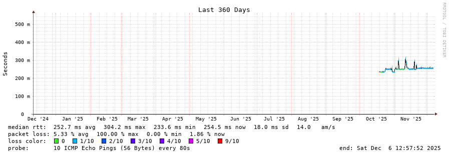 traceroute to 190.105.41.85 (190.105.41.85), 30 hops max, 60 byte packets - Generated at 2025-12-06 12:45:02