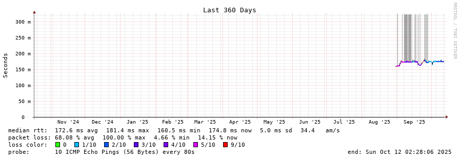 traceroute to 174.68.181.176 (174.68.181.176), 30 hops max, 60 byte packets - Generated at 2025-10-11 23:30:01
