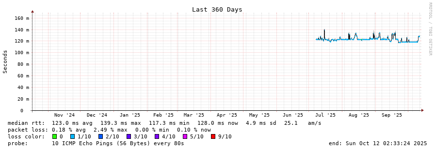 8 > 32.130.88.254 (32.130.88.254) [AS7018] 118.452ms 118.356ms 118.319ms