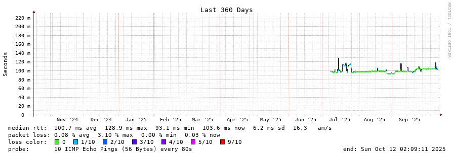 traceroute to 12.0.1.28 (12.0.1.28), 30 hops max, 60 byte packets - Generated at 2025-10-11 23:45:01